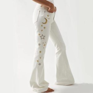 Embroidered Boho Flare Jeans: Women’s Denim Bell Bottoms