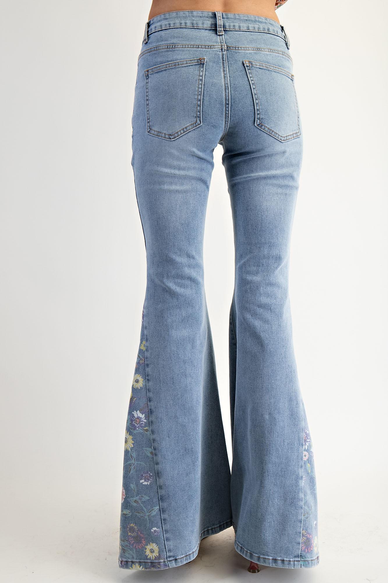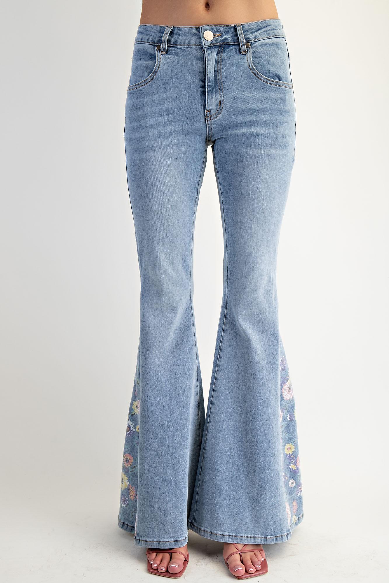 Vintage Floral Bell Bottom Jeans: High Waisted Retro