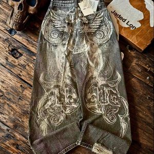 These patchwork jeans are not just everyday jeans; they are statement jeans for a bold look. Featuring a comfortable relaxed fit jeans cut, they embody the streetwear jeans aesthetic with their exaggerated wide-leg jeans silhouette, also suitable as wide leg pants. The patchwork jeans style is reimagined here with large, light-colored heart patchwork applied throughout the denim, offering a unique and artistic pattern. This design makes them incredibly unique jeans and a must-have for those looking for fashion jeans. They are a truly cute jeans option, delivering a comfortable, loose fit jeans and baggy denim look perfect for making a stylish impression.